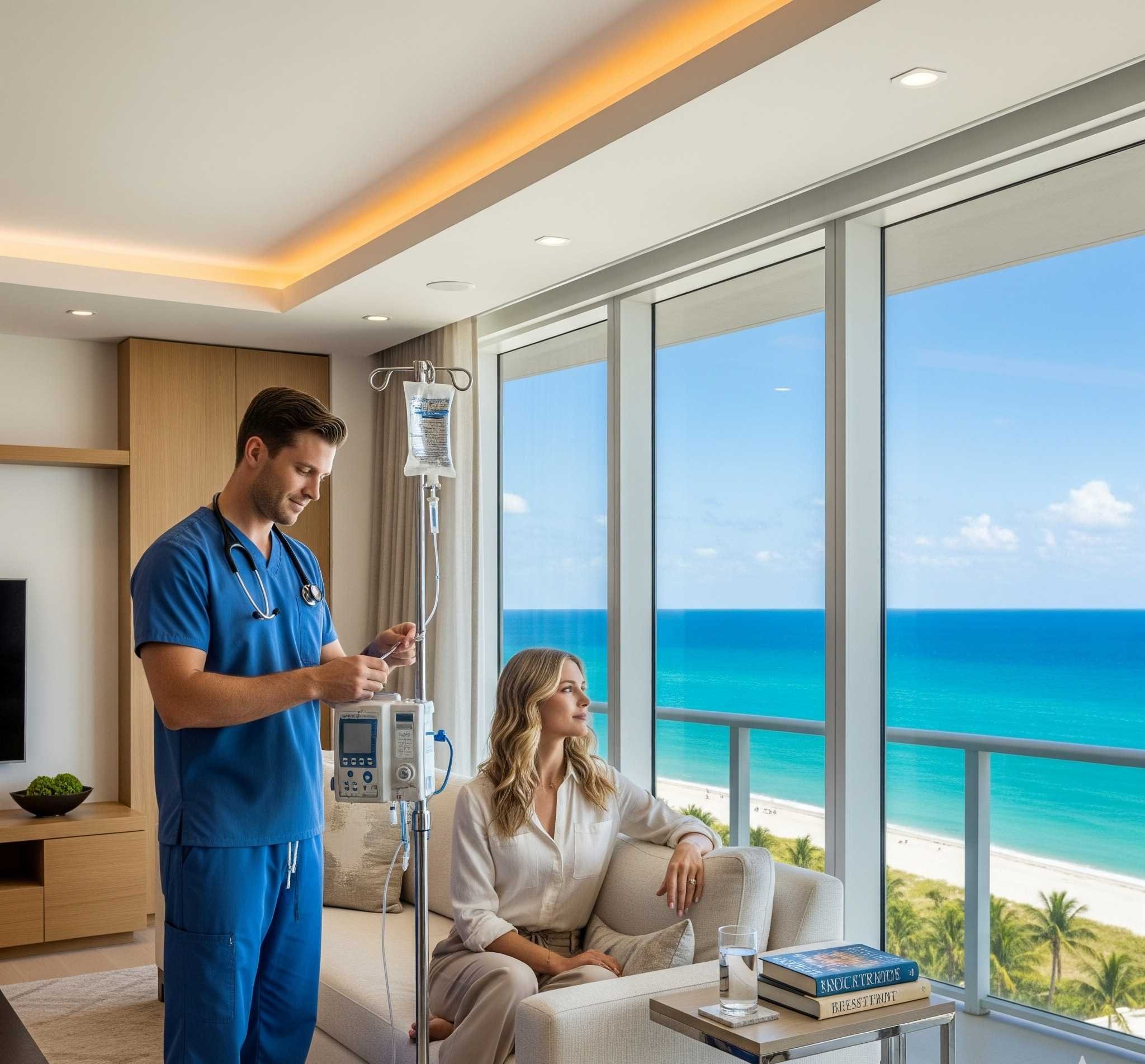 In a community like Bal Harbour, your time is invaluable. The last thing you want is to travel for a wellness appointment. With mobile IV therapy, our licensed Registered Nurses come directly to your home, office, or private condo. You can relax on your own sofa, by the pool, or in your living room while receiving a revitalizing treatment. This ultimate convenience ensures you get the care you need without a single disruption to your day.